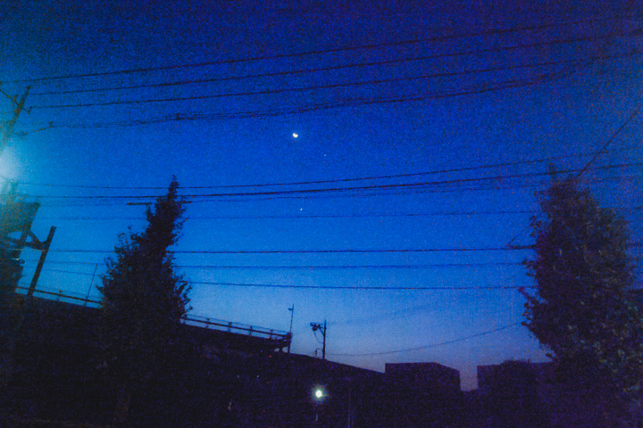 さらによく見ると惑星を二つ(多分木星と金星)伴ってとてもきれいな三角形を作っていた。
